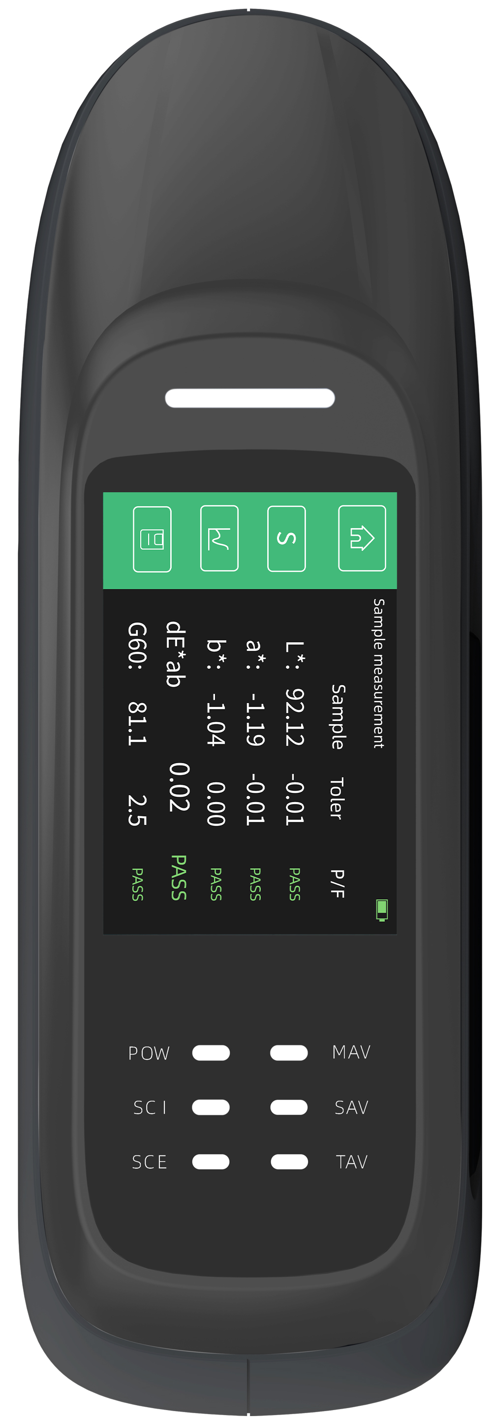 Visual perception is a combination of color and gloss. Traditional methods require two separate instruments and two measurements, which are time-consuming and inefficient. We have innovatively integrated high-precision color difference measurement and gloss analysis into one device. With a single click, the screen instantly displays both color parameters (Lab, LCh) and gloss values (GU), enabling more comprehensive and efficient quality control.